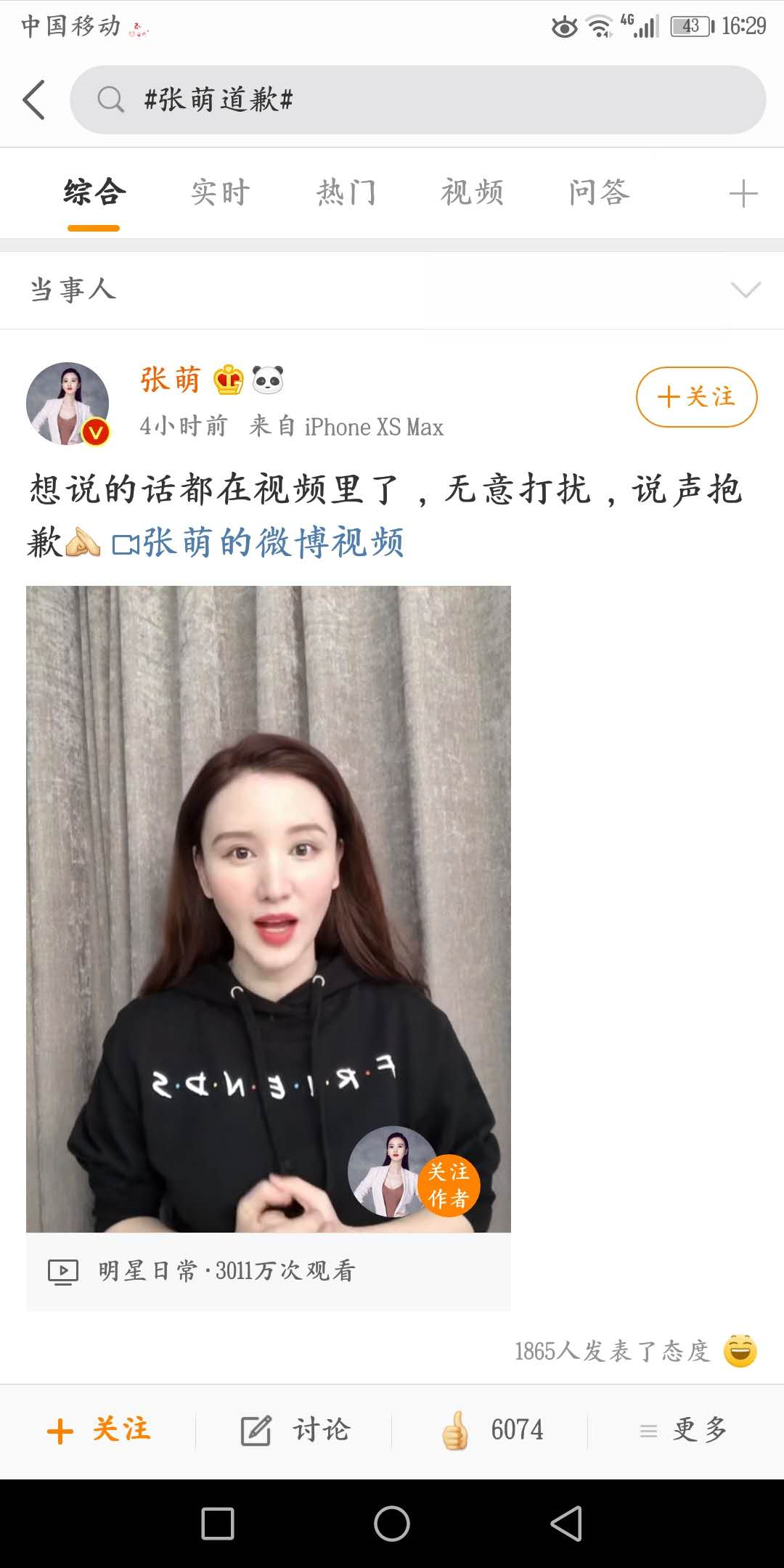 今日演员张萌发出了一段一分多钟的视频,要说的话都在视频里了,无意打扰,说声抱歉。在视频里张萌解释道:她只是想告诉网友真的认错人了,她们是两个人,她是‘萌芽’的‘萌,不是‘柠檬’的‘檬’。可能是因为在虎扑问答时解释得过于简短,不够清楚,所以让大家产生了一些误会和歧异。给另一个演员‘檬檬’造成了一些影响,在这里说一声对不起。