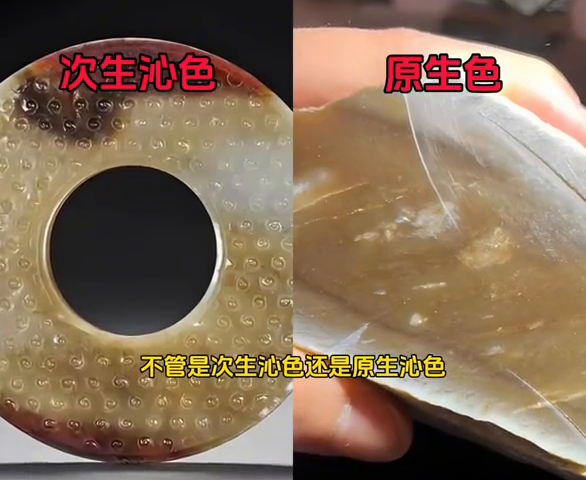 不管是次生沁色还是原生沁色,地下埋藏或成矿的过程中,同样的地质环境,类似的矿物质侵蚀都会形成各种各样的"沁色"。通常原生沁色更加的深入肌理,要比古玉的次生沁色更加自然明显。