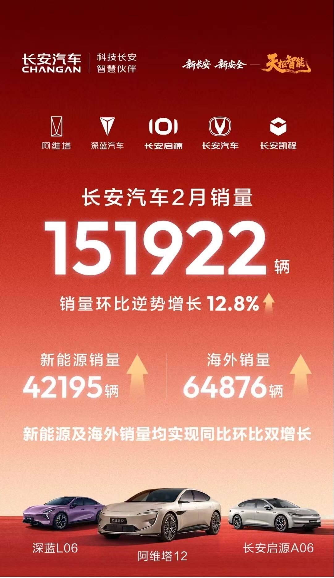 2月车市本是淡季,多数品牌销量“躺平”,长安却交出一份硬核成绩单:15.19万辆,环比暴涨12.8%!更关键的是,新能源