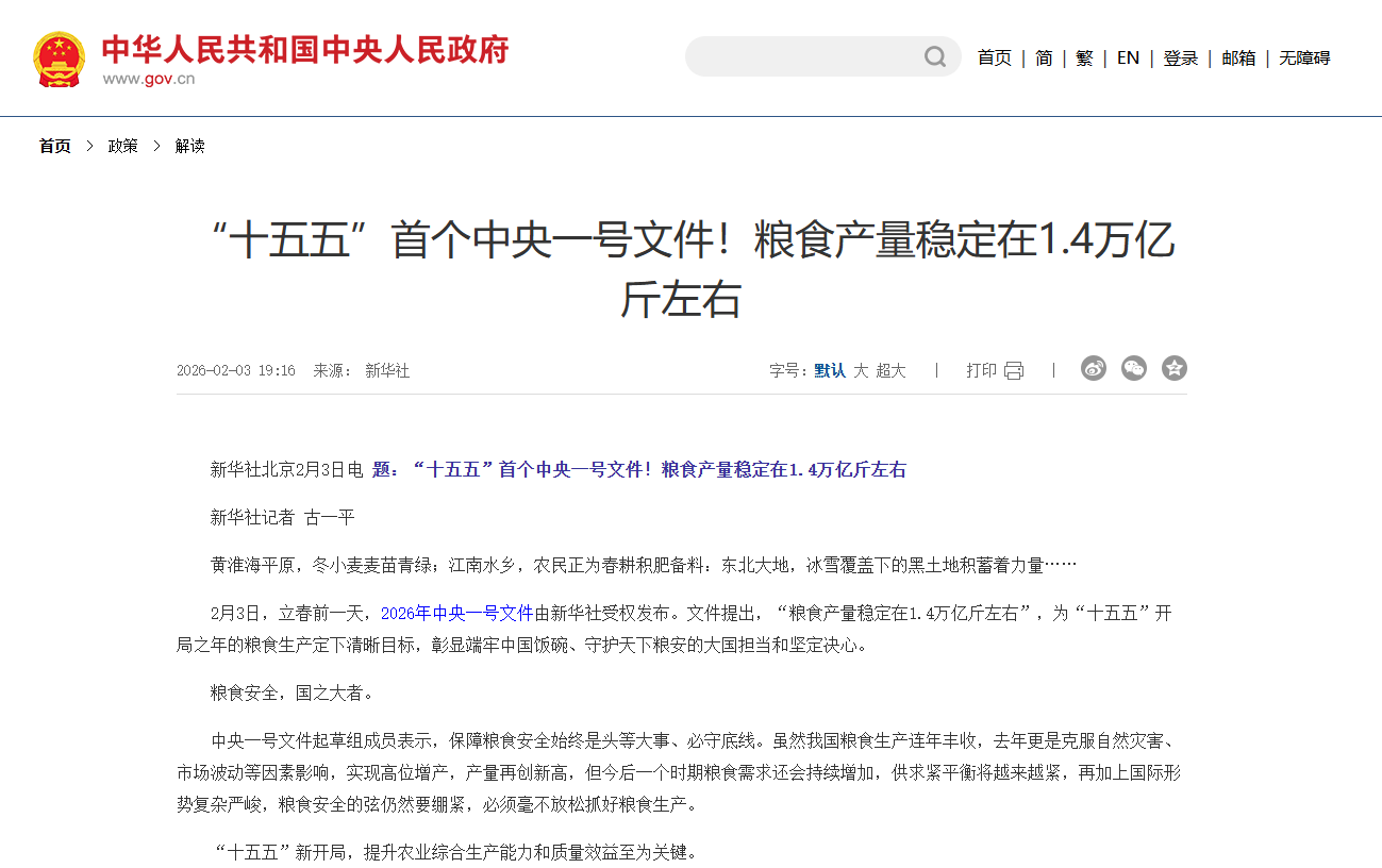 2026年“十五五”开局之年,中央一号文件明确部署“努力把农业建成现代化大产业”,这一命题成为全国两会热议焦点,也是农业