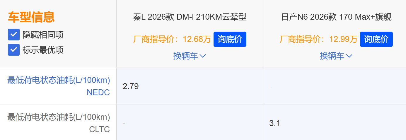 春节临近,在外工作的人将踏上返乡路,以前春节车票一票难求让,如今买车后,终于可以舒舒服服、从从容容地回家过年。但对于新车司机和计划春节前买车的准车主们而言,长途驾驶既期待又忐忑,续航焦虑、出行安全、舒适性等问题都得考虑周全。在10-15 万级家轿市场中,2026 款秦 L DM-i 与日产 N6 热度颇高,谁更能经受住春节返乡“极限考验”?咱们从五大维度好好比比。