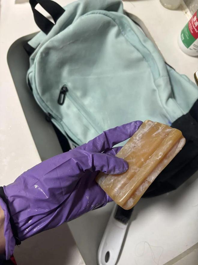 2)孩子书包脏了用肥皂刷洗,去污效果特别明显,甚至比用洗衣机机洗还要干净。