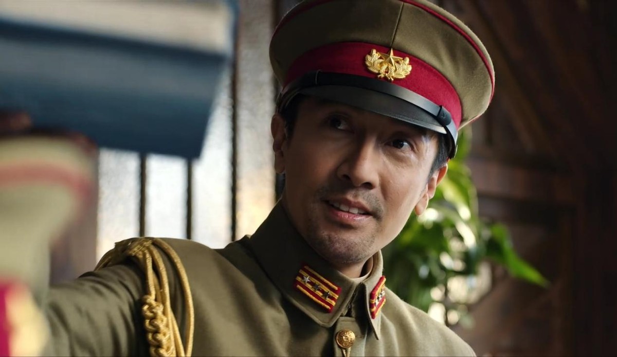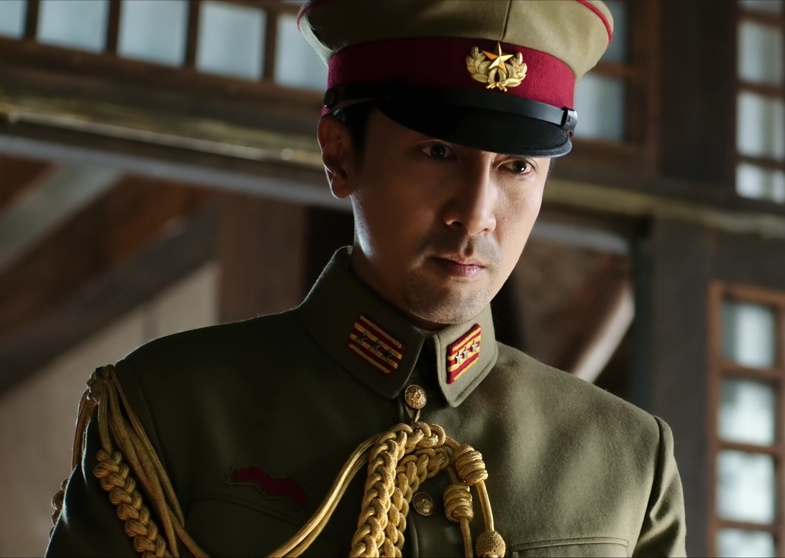人在东京面对日本军官时,从神情到仪态都在模仿日本人,直勾勾的盯着对方的眼神,绷紧的脊背,还有每说一句“嗨”,伴随一次点头,都足以以假乱真了。