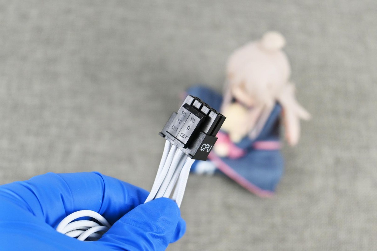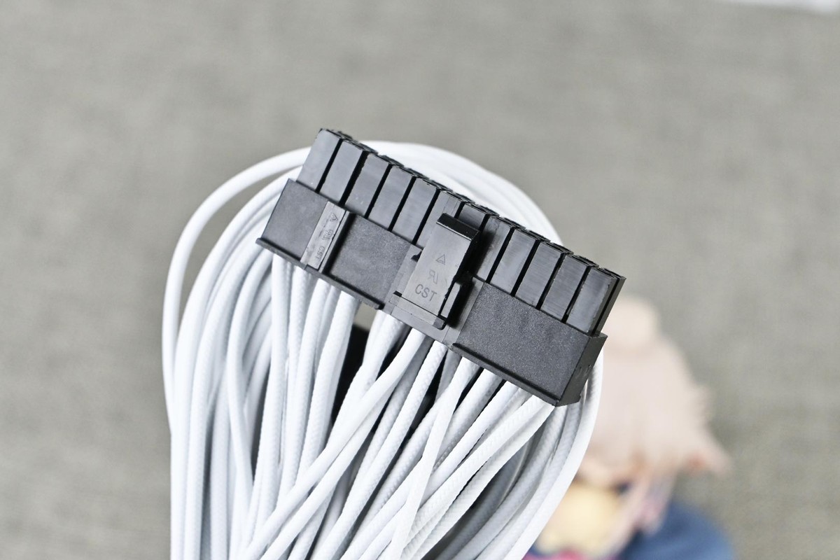 线材本身为纯白色压纹线,模组接口和插头为黑色配色,相较于此前TG灰色压纹线版本更适合用在纯白主题装机上。