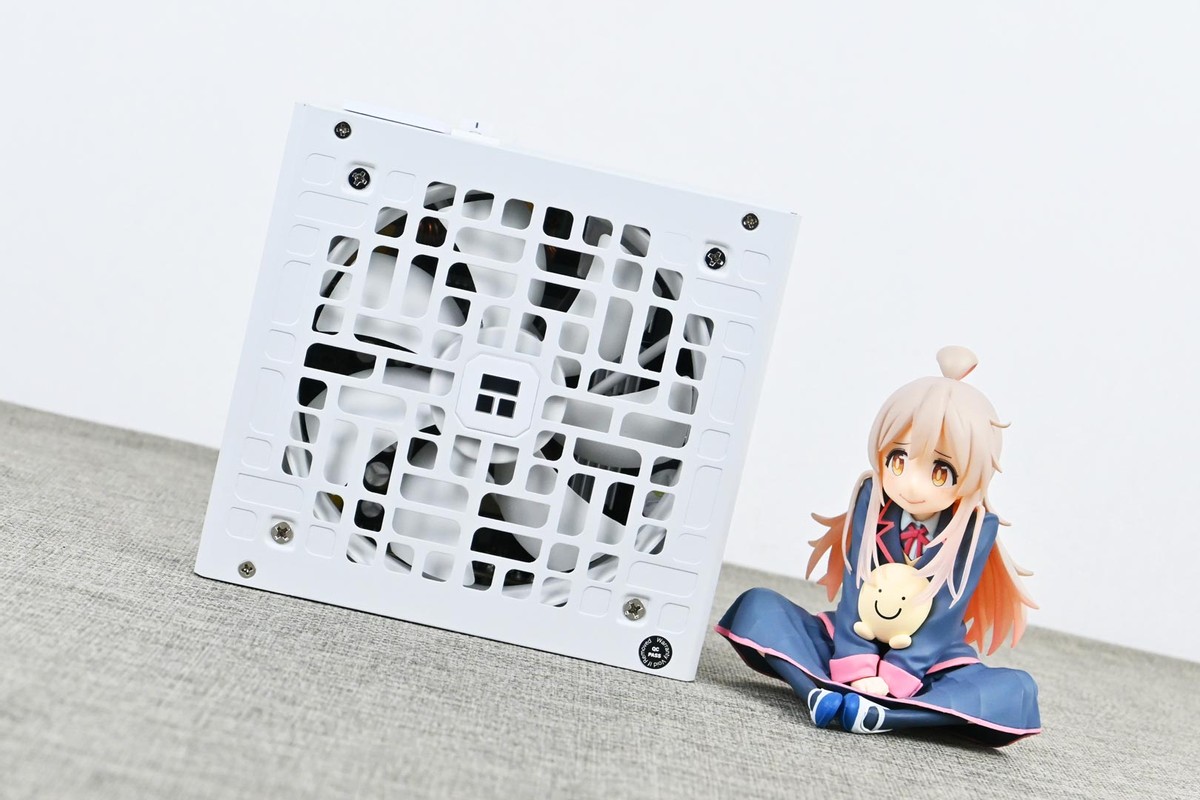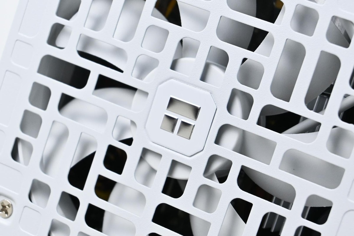电源细节SP1000机身尺寸为150mm x 140mm x 86mm,机身颜色为纯白配色,属于目前较为常见的14CM短尺寸ATX电源,对于常规ATX机箱和海景房机箱有着良好兼容性;电源本身散热部分具备智能停启功能,即低负载下风扇会停转保持静音;电源散热滤网采用和外壳一体成型的冲压设计,相比TG/TP系列改用了更大面积的进风栅格,改善散热效率。