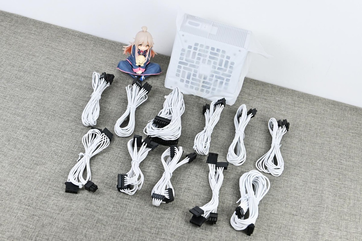 SP1000在线材配列和之前保持一致,包括24PIN x1、CPU 4+4PIN x2、12VHPWR x1、PCIE 6+2PINx3、SATA一分四 x1、D口一分四 x1以及SATA+D口混合 x1,能满足大多数玩家的日常装机需求。