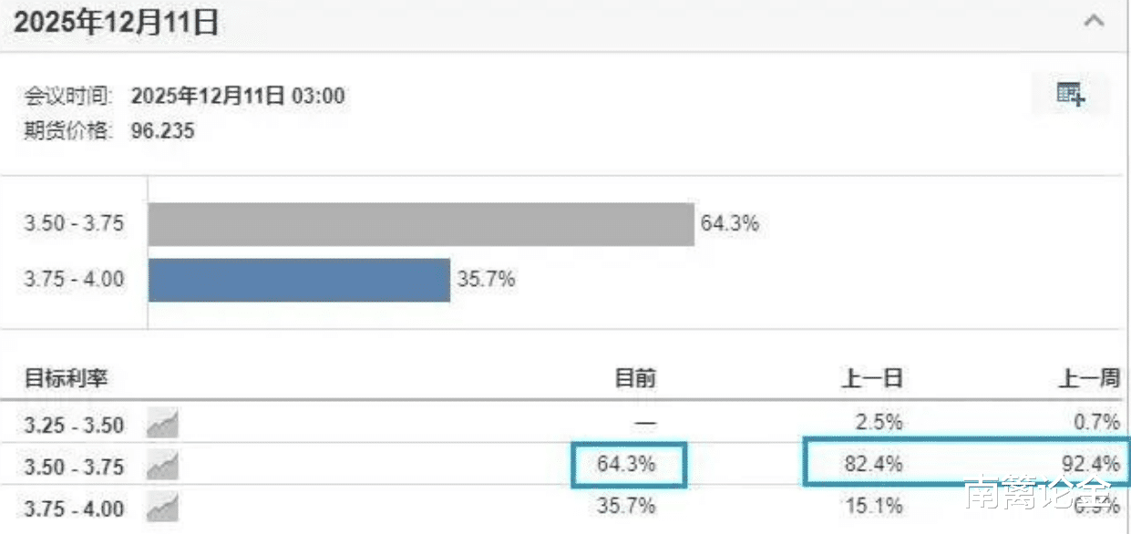 现在看来,没什么问题,对美联储来说,保持独立性至少是给市场明面上要看到的,未来的降息速度也不会突然加快。特别是12月的议息会议,当前市场对其的押注明显减弱。换句话说,若政府还在停摆,拒绝提供数据,那么美联储大概率会借题发挥,至少不能背上“去独立性”和“引起滞胀”两顶大锅。