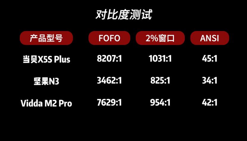 实测下来,三款产品中,当贝X5S Plus的亮度和对比度这两项核心参数比较突出,并且接口丰富,色准也是表现最好的,整体观感更舒适,不仅能满足日常追剧需求,配上好的音质,看一些高规格的电影也是没问题的,算是一台比较全能的机器。另外坚果N3和Vidda M2 Pro表现也不错,大家在选购的时候按需选择即可!