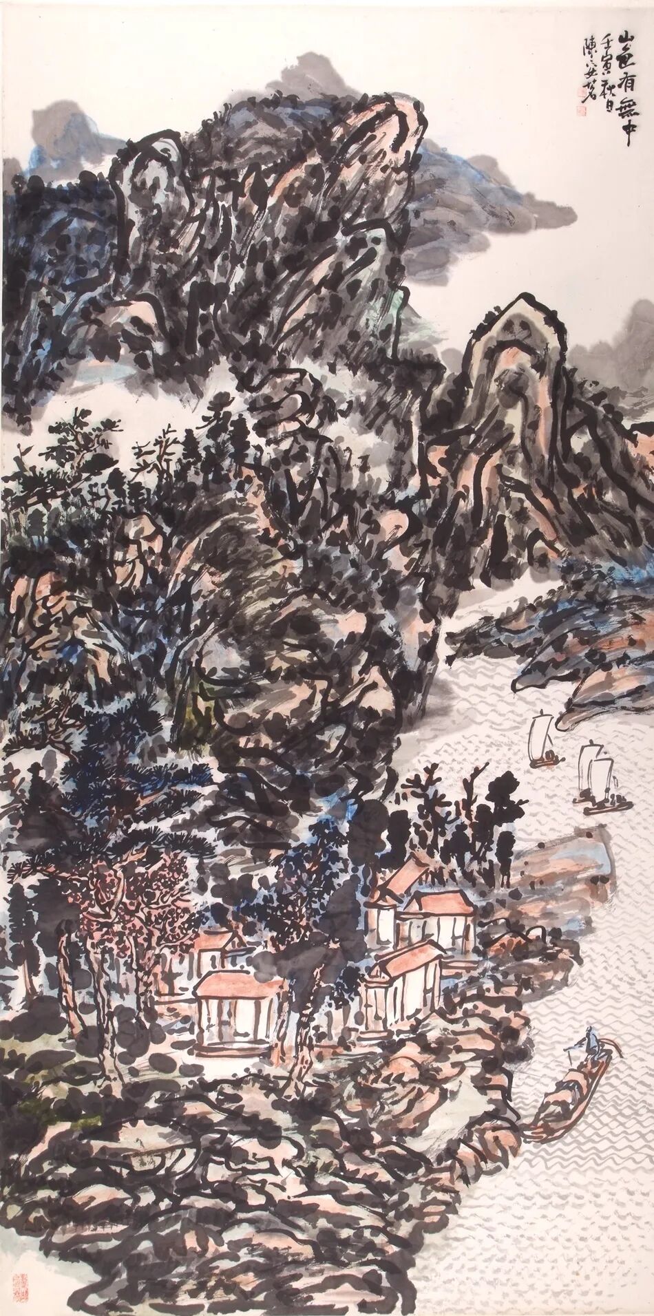笔笔有意,笔笔有形,笔笔有神,臻于站桩化境纵观陈安茗的山水画,最终达到了笔笔有意,笔笔有形,笔笔有神的艺术化境,这正是太极站桩“形、意、神、气”兼备的最高境界。有形,是如站桩正形般物象的精准还原,是笔墨的扎实功底;有意,是如站桩凝神般情感的自然流露,是意境的悠远营造;有神,是如站桩气足神韵的生动流转,是精神的高度凝练。三者合一,让他的每一笔都兼具形态之美、意境之韵、精神之魂,观之令人回味无穷。在其作品中,没有一笔是多余的,没有一点墨是无用的,恰似太极站桩周身合一、无一处松懈。勾勒山石,既见山石之形,又显山石之韵,更藏山川之神;点染林木,既具树木之态,又含生机之意,更有苍劲之神;勾画流水,既得水流之姿,又蕴灵动之意,更具清雅之神。这种笔笔皆精、笔笔皆妙的艺术水准,是太极意念与笔墨功夫深度融合的结果,让他的山水画远观有气势、近观有细节,品读有韵味、回味有精神,成为当代山水画中不可多得的精品。