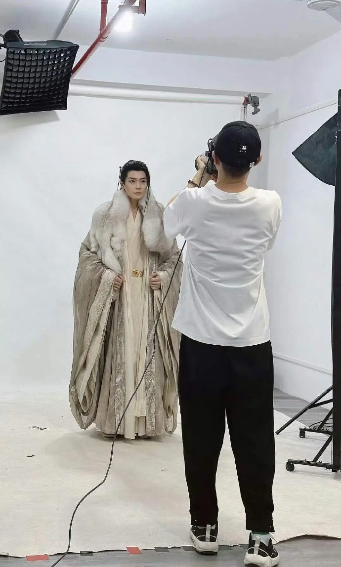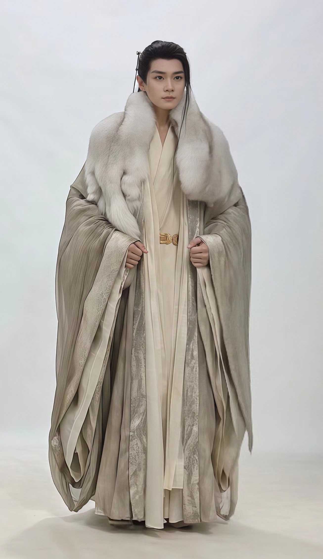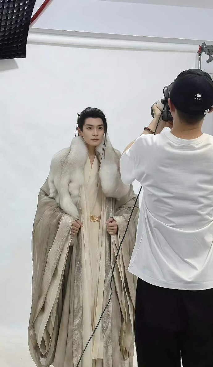 只见曹骏身穿一袭厚重鎏金古袍,肩上披着皮裘毛领,汉服完美勾勒出他的身形,温文尔雅不怒自威,举手投足间尽显贵族风范。颇有种皇子的既视感。虽然天气这么热,但大夏天也要穿得这么厚重,看着都让人快要热晕了,不过,演员要为角色服务嘛。