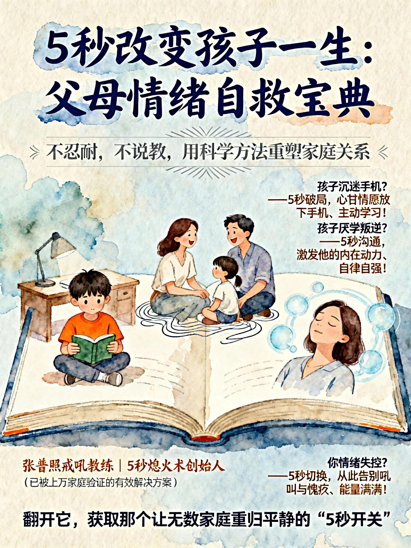 父母的情绪定力心法:如何在想催促、想发火的瞬间,用一个独特的5秒动作稳住自己,避免因焦虑说出伤害孩子的话、做出让事后后悔的事。先解决情绪,再解决事情。