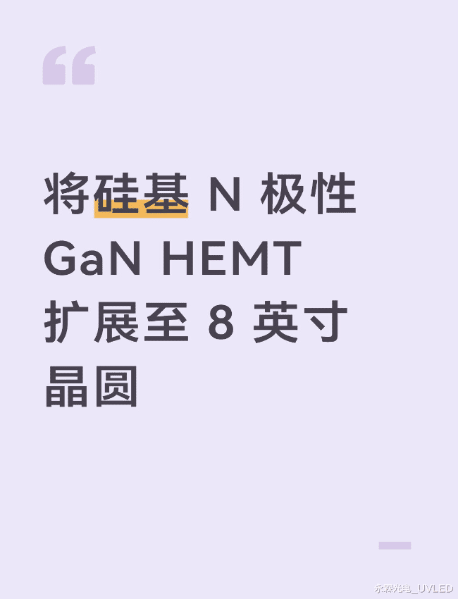 历史上,生产高质量的 N 极性 GaN 一直颇具挑战性。与 Ga 极性生长相比,N 极性外延(晶体生长)对表面化学和生长条件更为敏感,往往导致表面粗糙或缺陷形成。因此,文献中报道的大多数 N 极性器件都是在相对较小的衬底上制造的。