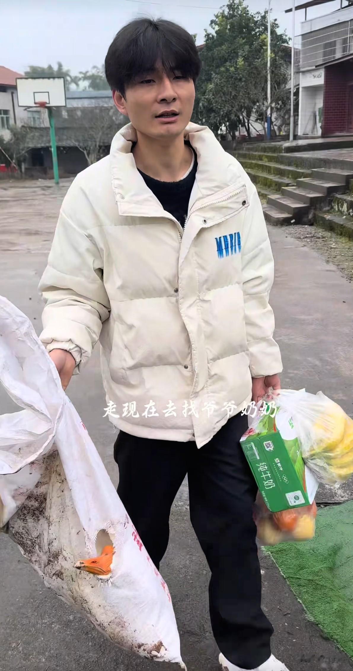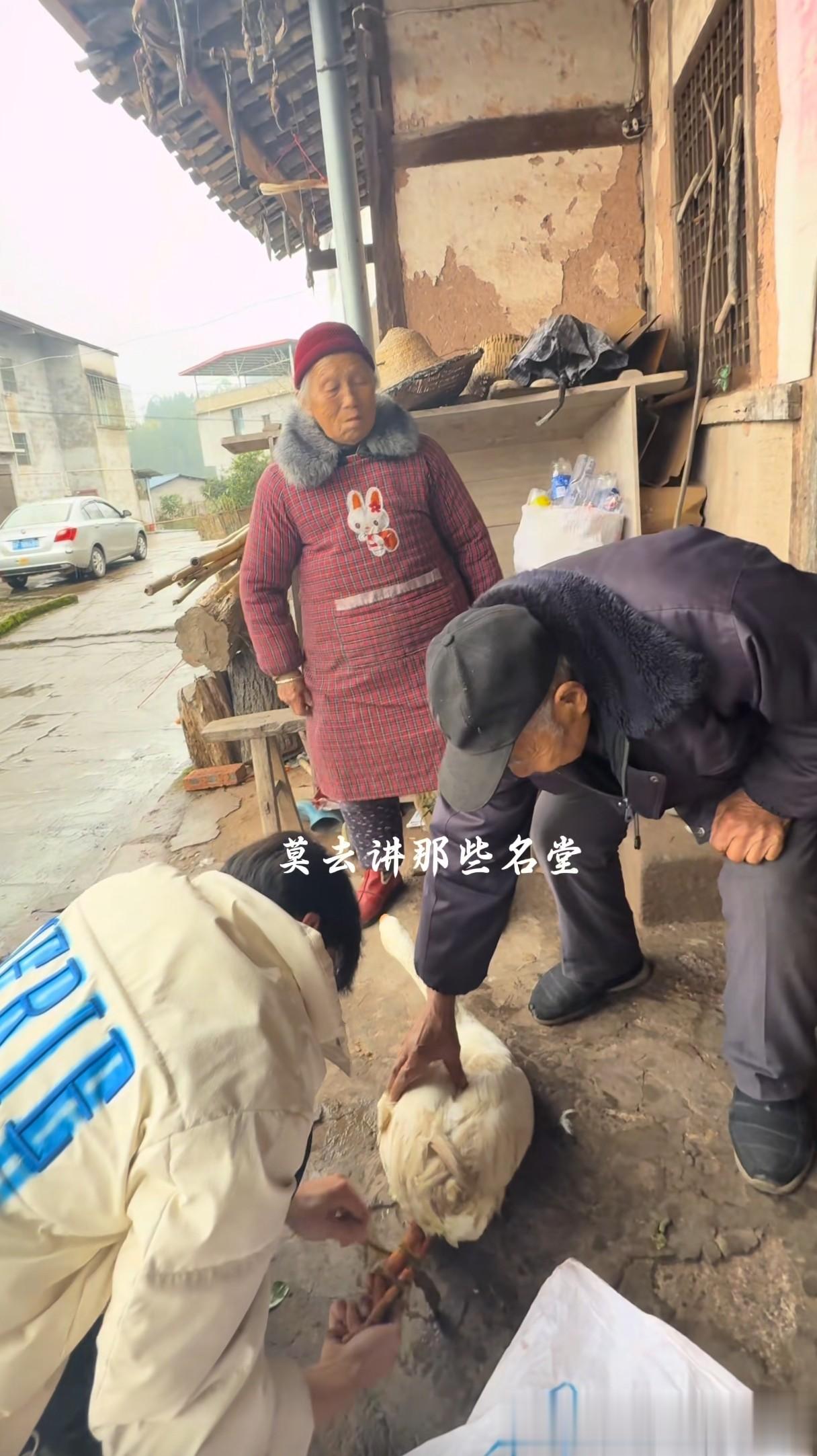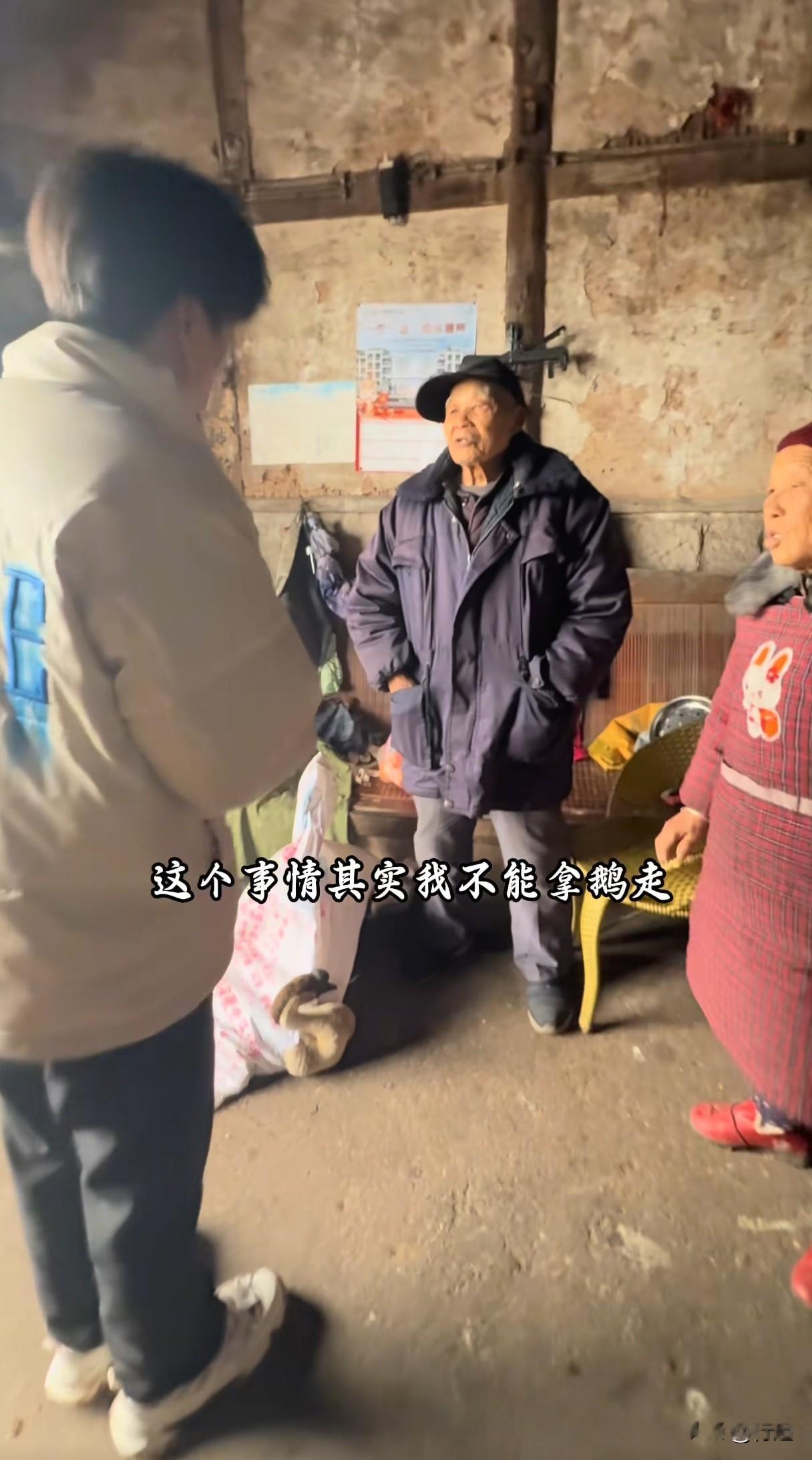 没能买到合适的大鹅,他最终在村民介绍下,从村里一户人家买了两只大鹅送到爷爷奶奶家——一只给老人养,一只杀了请大家一起吃。