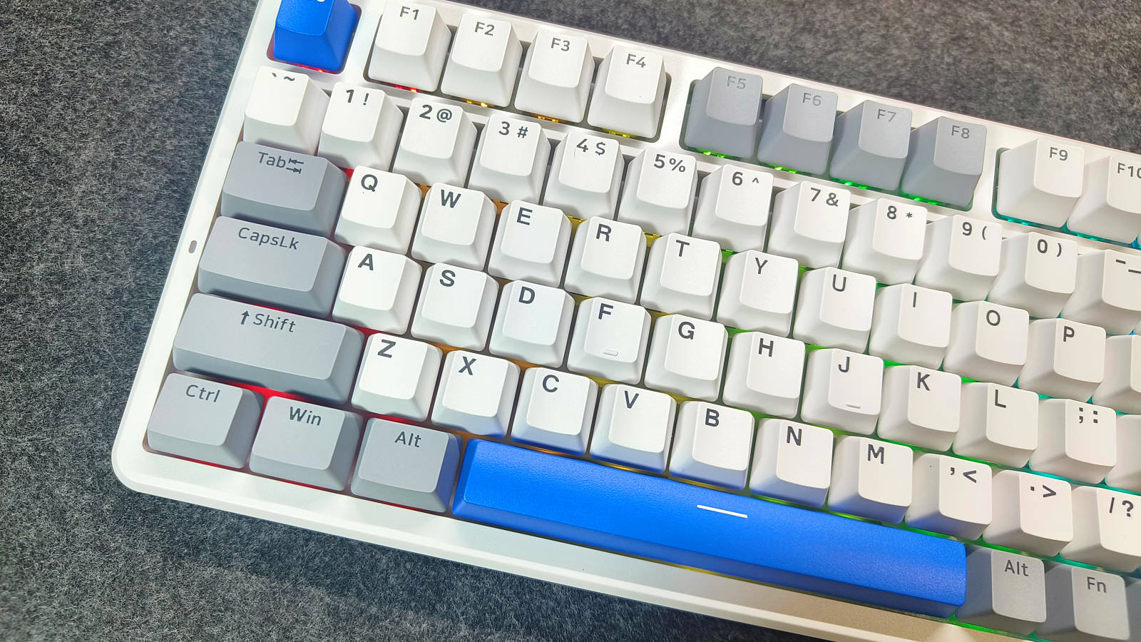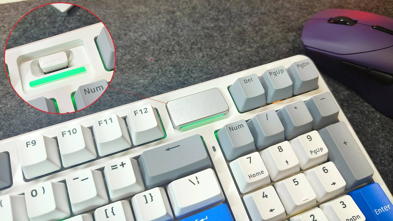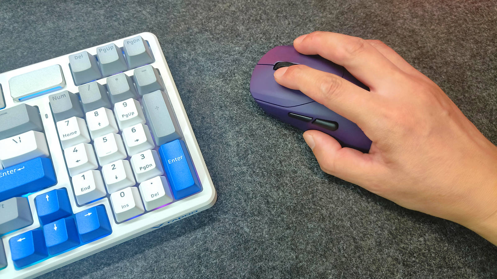 键盘采用 Gasket 结构,搭配 7 层消音填充(含 Poron 夹心棉、IXPE 轴下垫、PET 声优垫、Poron 底棉等多重结构),并有单键 1.3mm 开槽 PCB。这种配置带来柔软且一致的出色敲击手感,空腔音控制较好,按键声清脆悦耳;横向开槽 PC 定位板则进一步削弱振动、减少按键偏移,确保每一次触发都稳定精准。