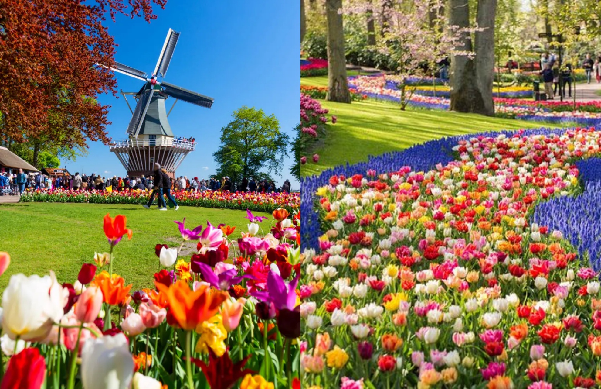 每年三月下旬到五月上旬,荷兰进入花季。四月中下旬是黄金期,郁金香开得最热烈,颜色最饱和,出片率100%📸!
