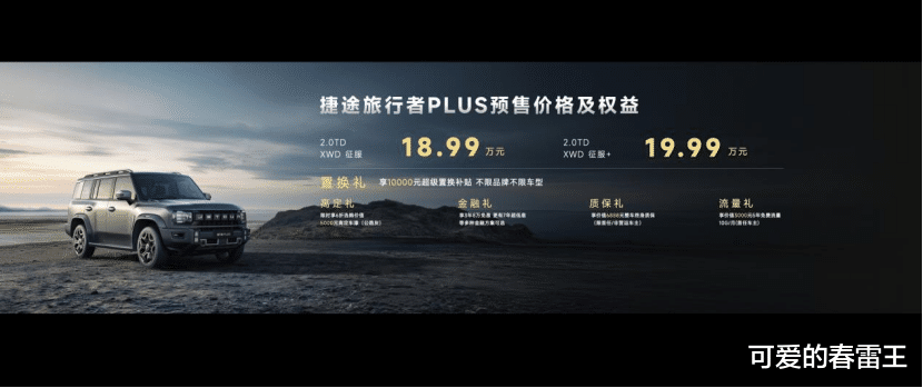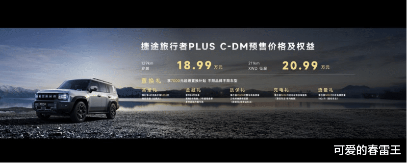 捷途旅行者PLUS,官方指导价18.99-19.99万元。捷途旅行者PLUS C-DM,官方指导价19.99-20.99万元。同时,捷途汽车还为消费者带来多重购车权益: