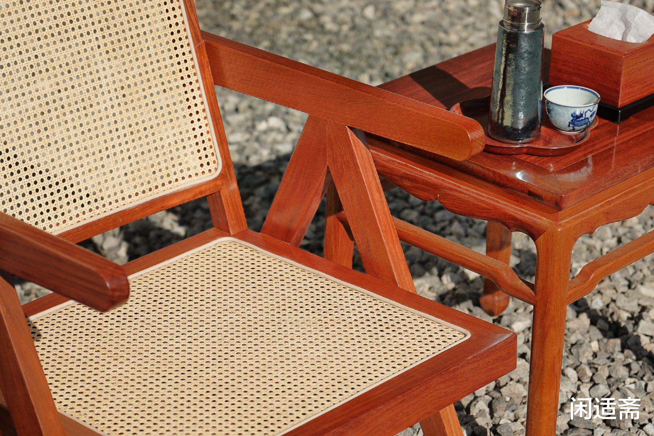 更值得称道的是椅子对人体工程学的注重,让美观与舒适实现了完美平衡。座面的高度与深度经过精准测算,符合大多数人的坐姿习惯,双脚能自然落地,腿部受力均匀;部分椅背设计为符合人体半躺阅读姿态的倾角,靠背弧度贴合脊柱自然曲线,从腰部到肩部都能得到均匀支撑,即便长时间半躺阅读、休憩,也不易感到腰酸背痛。这种 “以人为本” 的设计,让椅子不仅是一件好看的 “装饰品”,更是能真正融入日常生活的 “实用器”,完美适配现代人家中客厅、阳台、书房等多种场景。这款缅甸花梨木昌迪加尔藤椅都能完美胜任。