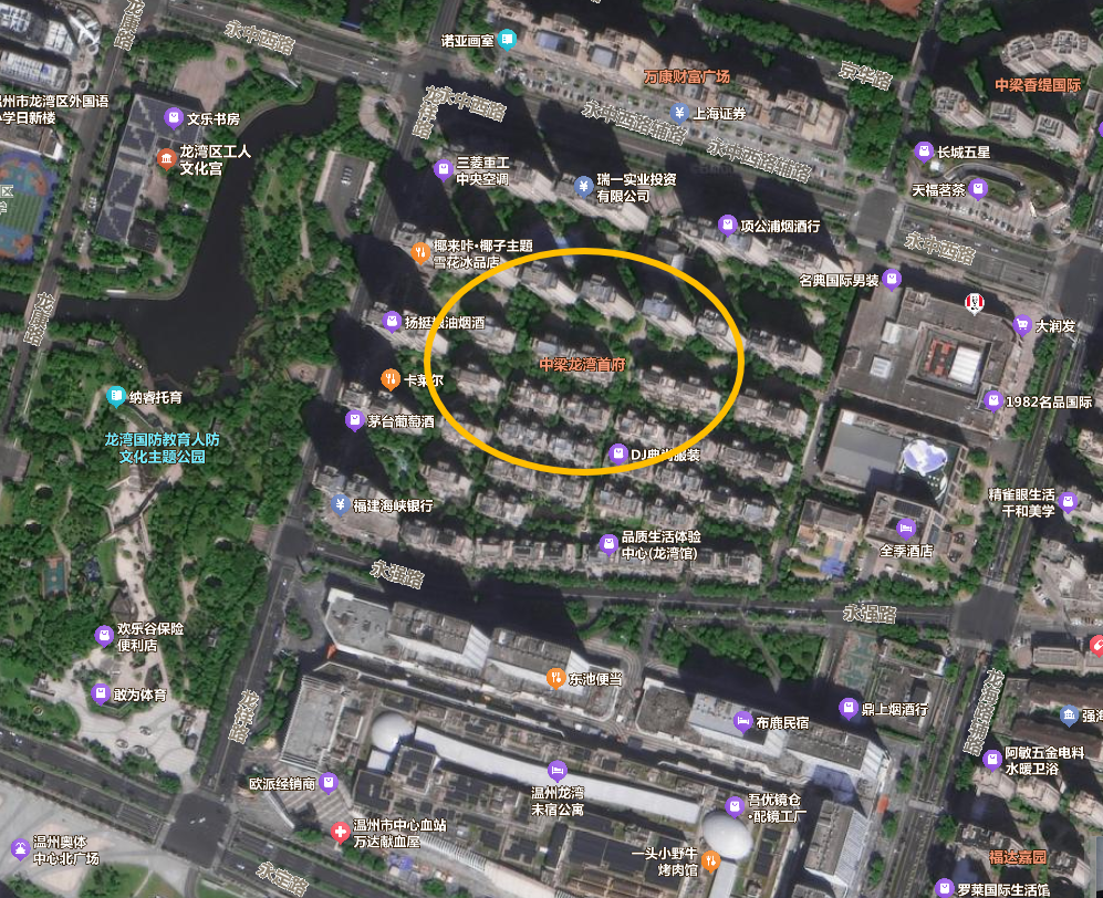 该小区位于龙湾区永中西路与龙祥路交叉口。西侧就是公园,楼下就是万达广场,东面有大润发超市,生活较为便利。