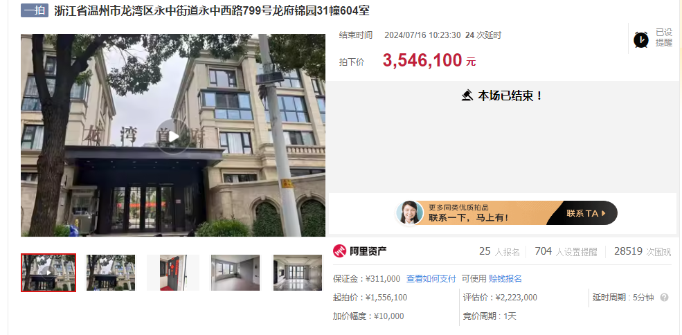 龙府锦园31幢604室(推广名:中梁·龙湾首府),建面约130.38㎡,起拍价约156万元,起拍单价约1.19万元/㎡,吸引了25人报名,有204人次设置提醒,28519次围观。