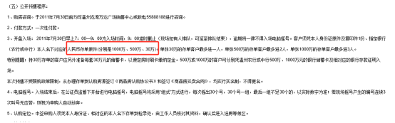首期开盘的购房资格是购房客户须凭本人名下对应的人民币存单(分别是1000万、500万、30万)。