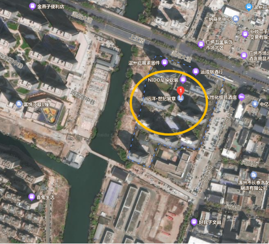 还有一套位于远洋·世纪宸章,是龙湾吾悦广场东面的商品房小区,直线距离约700米。本次拍卖的10幢801室房源,位于小区西侧,一层两户,西边套能有不错的河景。