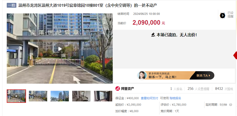 该房源曾在今年6月底流拍过,当时流拍总价为209万元,流拍单价约1.57万元/㎡。