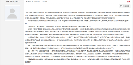 最终开盘当天有609组客户(其中21组购买整层、3组求购半层)进场认购。由于2011年时住宅限购,在投资渠道不多的情况下,其中不乏多套,半层甚至整层购买的投资者。开盘当日部分楼幢热销85%,让我们看到了在当时限购、限贷背景下龙湾楼市的不可一世。