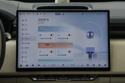 步入车内,极氪7X的内部氛围顿时给人温馨包裹感。大量采用环保材料,搭配柔软包裹面料,整体座舱质感厚重且舒适。中控台上的“科技三件套”尤其引人注目:13.02英寸全液晶数字仪表盘、36.21英寸AR-HUD抬头显示和16英寸3.5K Mini-LED中控屏,所有关键驾驶信息一目了然,无需低头,有效提升安全。同时,车机平台搭载高通骁龙8295芯片,配合ZEEKR AI OS操作系统及Kr AI多模态大语言模型,实现感知、决策、执行的良好协同,构筑了从感知到执行的全链路智能服务体系。支持四区域语音唤醒且识别精准,连续语音及“可见即可说”功能极大提升了使用便捷性。无论身处前后排,哪怕是孩子轻声呼唤,系统皆能迅速响应,其体验顺畅且自然。