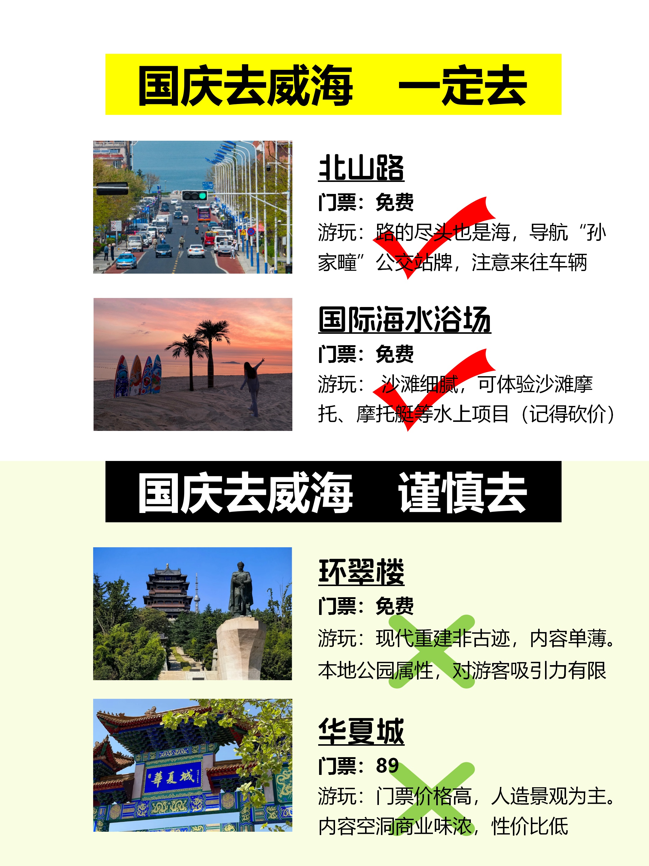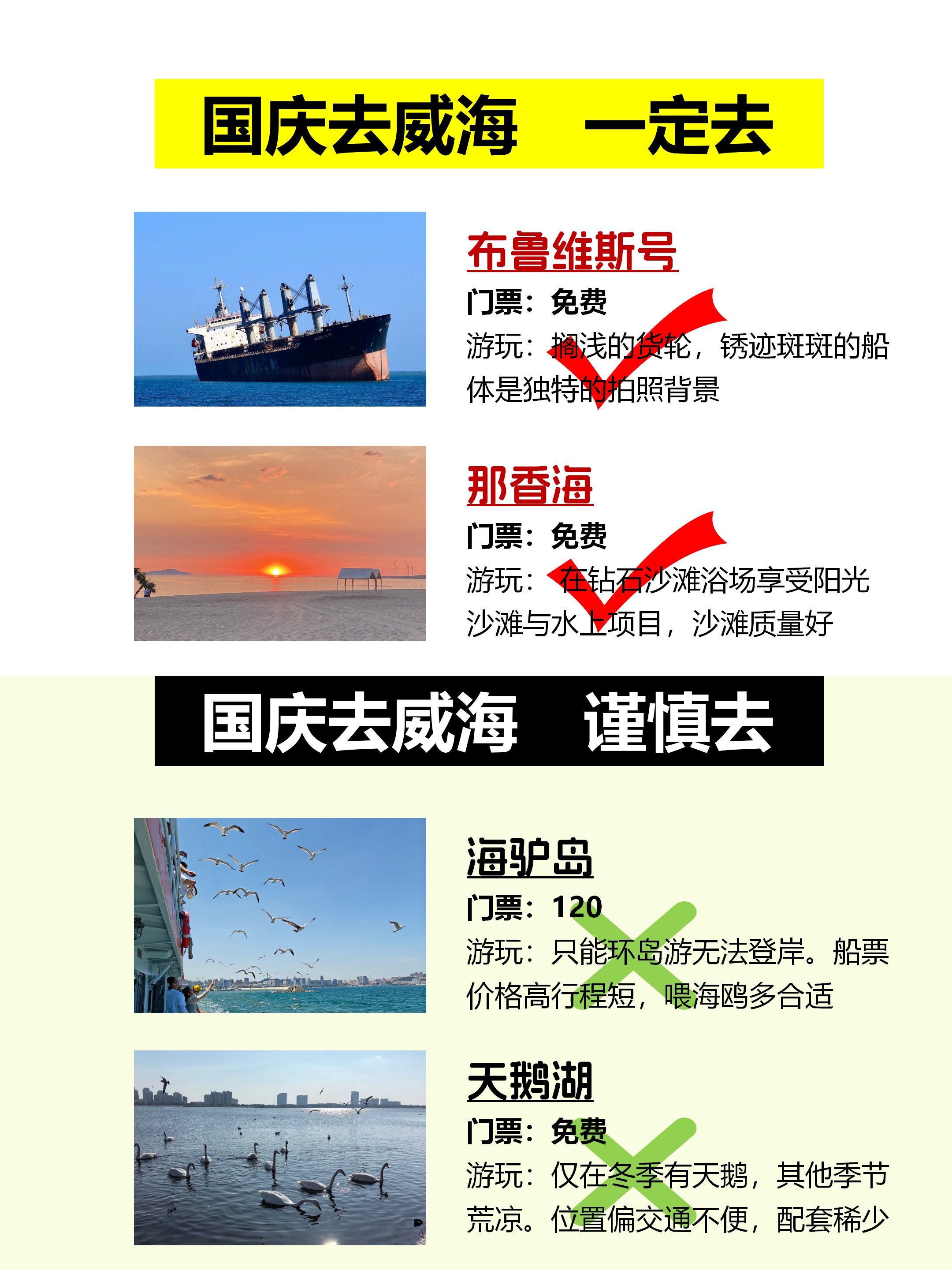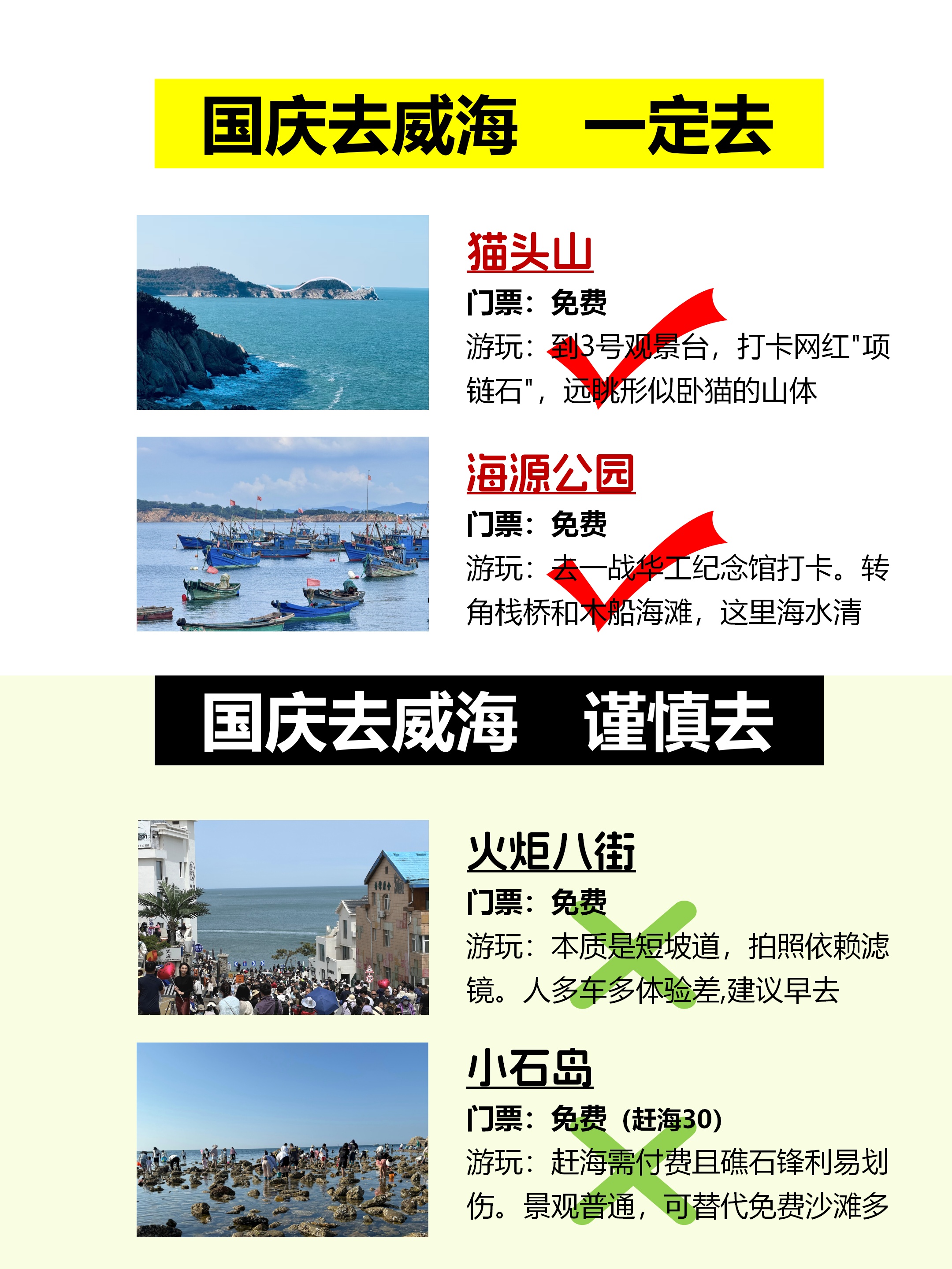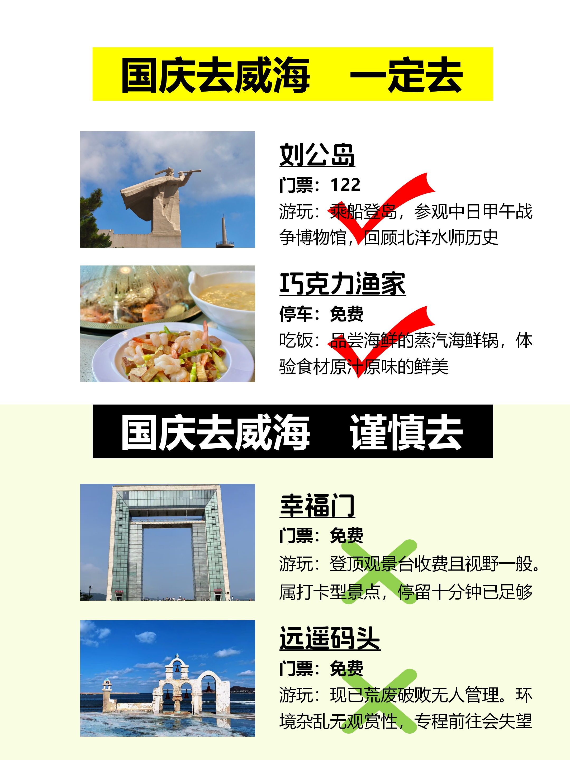 · Day 2:刘公岛(半日)→威海公园→悦海公园→韩乐坊· Day 3:那香海→鸡鸣岛(注意船期)→金石湾艺术园区