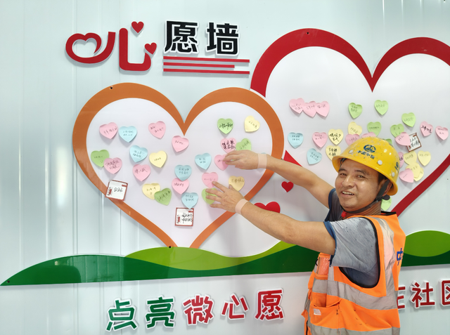 来自山东的工友张海庆感慨道:“平时工作忙,很少表达对家人的思念,写下心愿的时候,好像家人就在身边。”这面小小的墙壁,承载的不仅是个人愿望,更是建设者们“舍小家为大家”的奉献情怀。