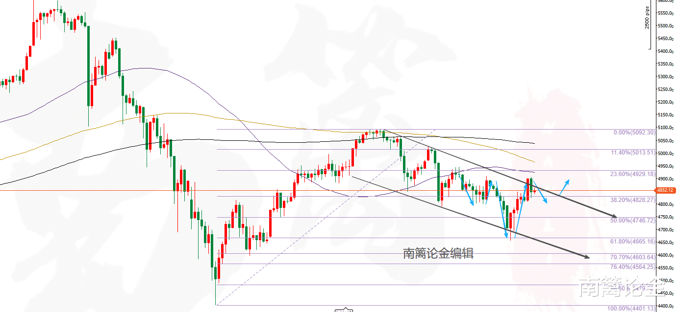 算了,周五嘛,行情天然存在黑天鹅,确实不好下手。现在黄金上存在了一个小周期头肩底的可能,颈部4900一带,左肩位于4800,头部在今早低点4650一带。故而今天只留下了这一个参考,一旦失败,那么就随它运行吧,资本是贪婪的,不可能割一半就走。