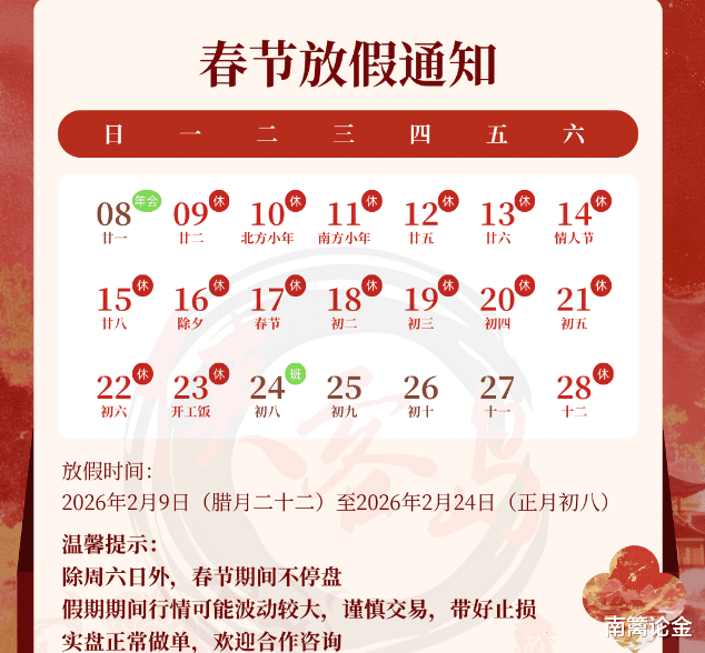 已经可以想象得到放假后能多么快乐了。话说在前,国内不管放多久的假,国际上都是正常周一到周五的工作日开盘的。