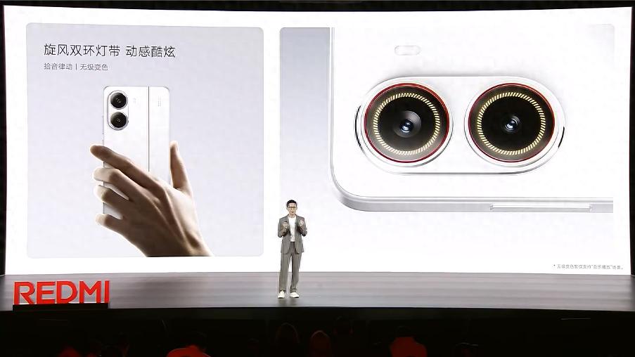 和今年的小米数字旗舰一样,Turbo 4也采用了直屏设计,但要比K80系列更轻更薄一些,手机厚度仅8.06mm,重量约203.5g。外观采用了全新设计元素,包括磨砂柔雾玻璃、菱格双拼纹理、红色腰线、旋风双环灯带等,其中旋风双环灯带可在播放音乐时随音乐节奏律动,并且支持消息通知、充电提醒。另外相机模组升级到了采用钢琴烤漆工艺的全金属Deco,可选祥云白、浅海青、暗影黑三款配色。