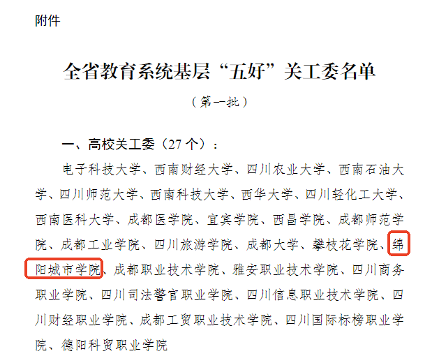 近日,四川省教育厅关心下一代工作委员会印发《关于认定全省教育系统基层“五好”关工委(第一批)的通知》。绵阳城市学院关心下一代工作委员会成功入选第一批全省教育系统基层“五好”关工委名单,是四川省唯一一所民办本科高校。