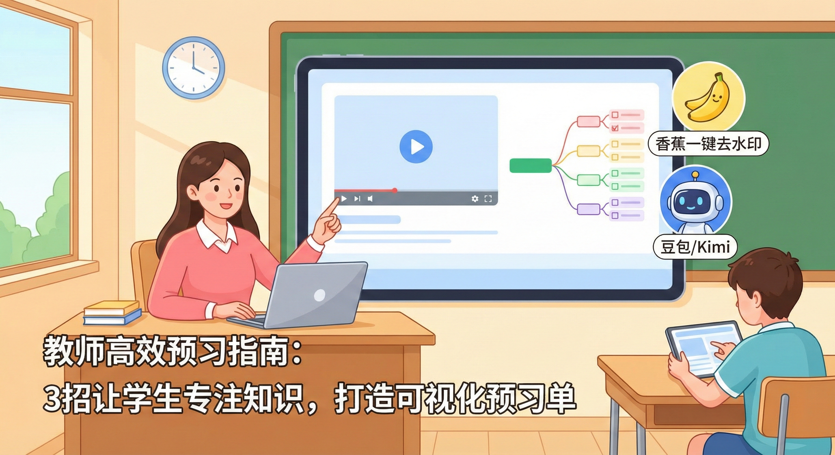 预习痛点解决方案推荐工具链接有广告/游戏提取纯净 MP4 原片香蕉一键去水印知识点零散批量下载思维导图 图集香蕉一键去水印学生不看视频生成针对性 检测题豆包 / Kimi高效的预习是高效课堂的一半。当我们用技术手段帮学生屏蔽掉干扰,他们自然能更专注地吸收知识。如果你认可这种精细化的助学方式,不妨点个赞或转发给你的搭档,好方法值得大家一起尝试。