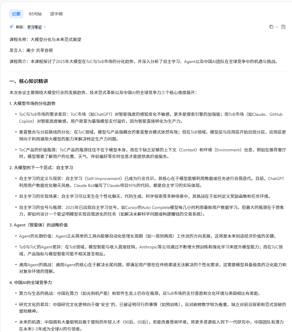 但二八定律是结果,而非原因,真正把用户困在信息围城里打转的,是市面上多数会议产品还在自上而下的流水账式速记里摸索,无法满足真实存在的个性化需求。