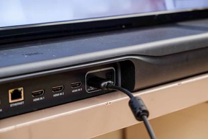 虽然蓝牙连接方便,但传输带宽有限(最高支持 aptX HD,约 990kbps),而且有延迟,无法传输全景声信号(Dolby Atmos或 DTS:X 信号)。建议选择同时有HDMI输入(in)和输出(out ARC/EARC)接口的型号,能直接从播放设备(如蓝光机、PS5)无损传输全景声信号,音质提升肉眼可见。