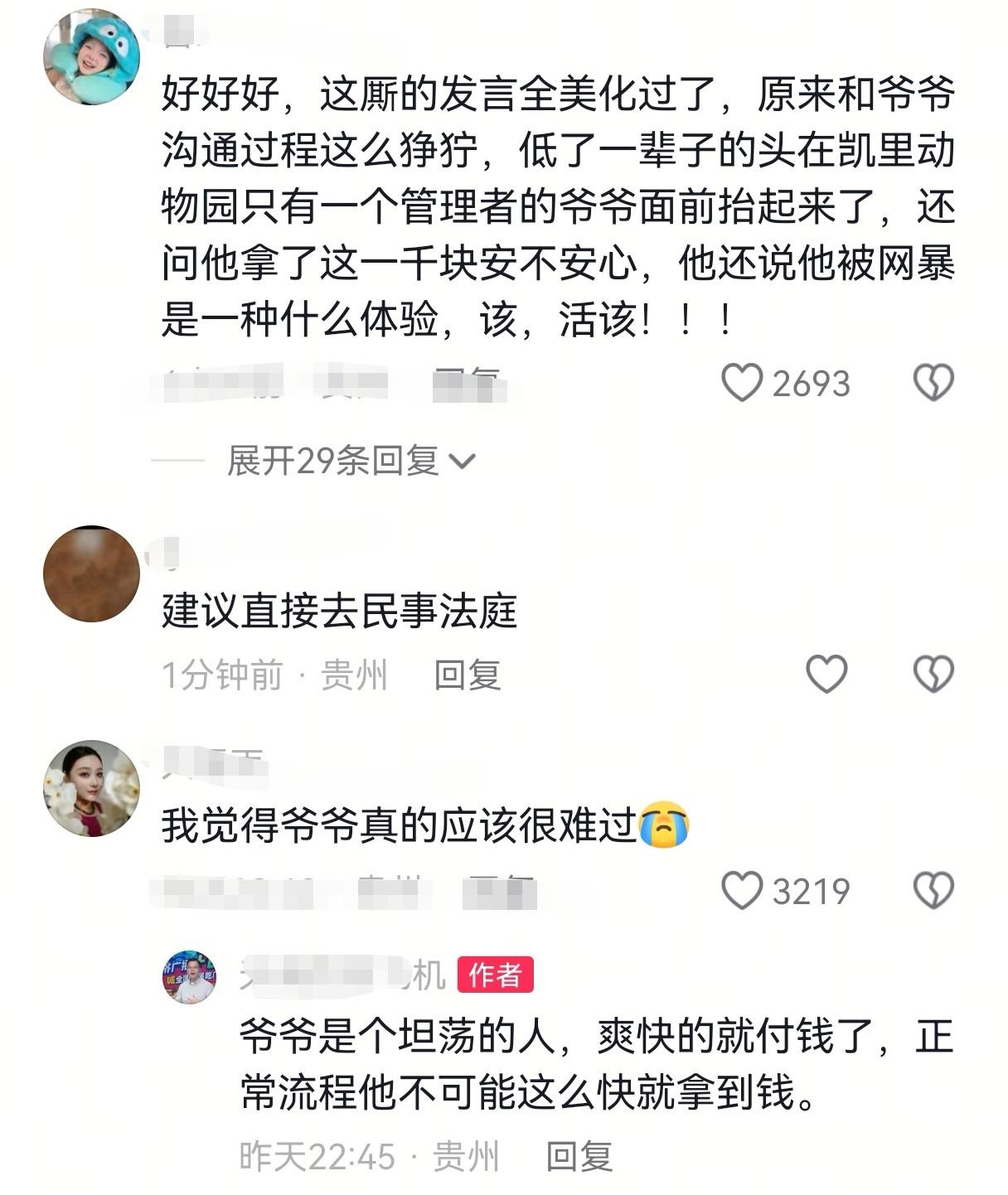 评论区里充满质疑:“成年人了,难道不知道投喂动物有风险?”“明知道不能喂,还硬上,是不是故意碰瓷?”“从没见过发视频网暴自己的”。