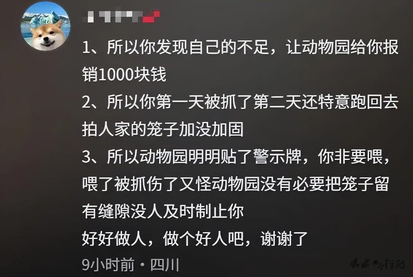 园方在管理上或许确实有提升空间,例如可以增加更多的防护措施或安排更多巡逻人员。但这绝不能成为游客无视规则、为自己开脱的借口。