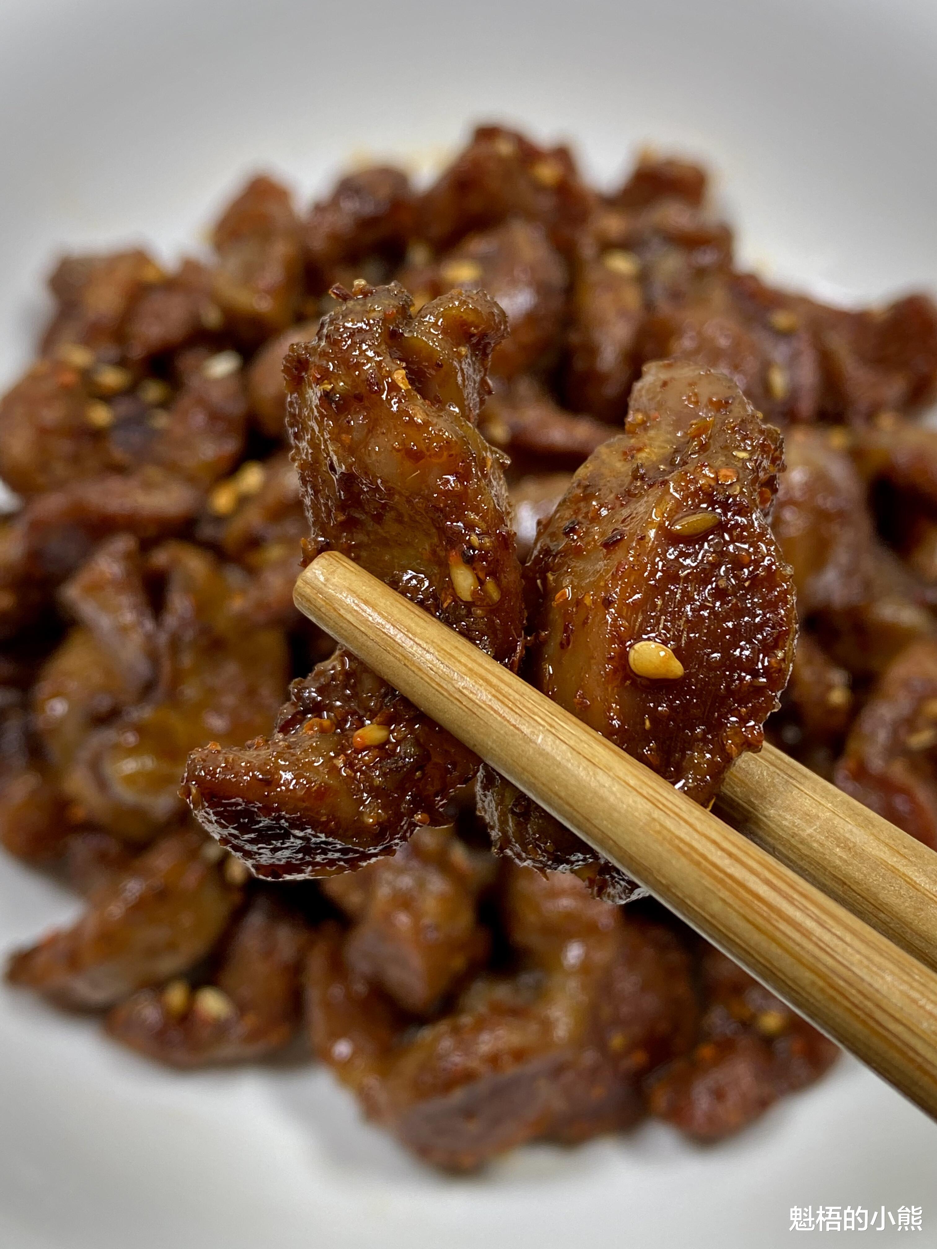 第一次在亲戚家吃到这道香辣鸡胗,我愣是追着她要了方子。鸡胗切成小块,炸到外酥里嫩,裹上红亮的烧烤料,咬一口,咯吱咯吱的,越嚼越香。干香有嚼劲,香辣过瘾,配着啤酒,一上桌就秒光。从那以后,这道菜就成了我家餐桌上的常客,做法简单,比烧烤摊还香,喜欢吃鸡胗的一定要试试。