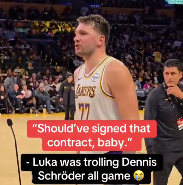 此前湖人对阵国王的比赛里,东契奇曾与施罗德在场上发生口角,东契奇向施罗德喷垃圾话:“宝贝,你当初真该签下那份(4年8000万)合同。”