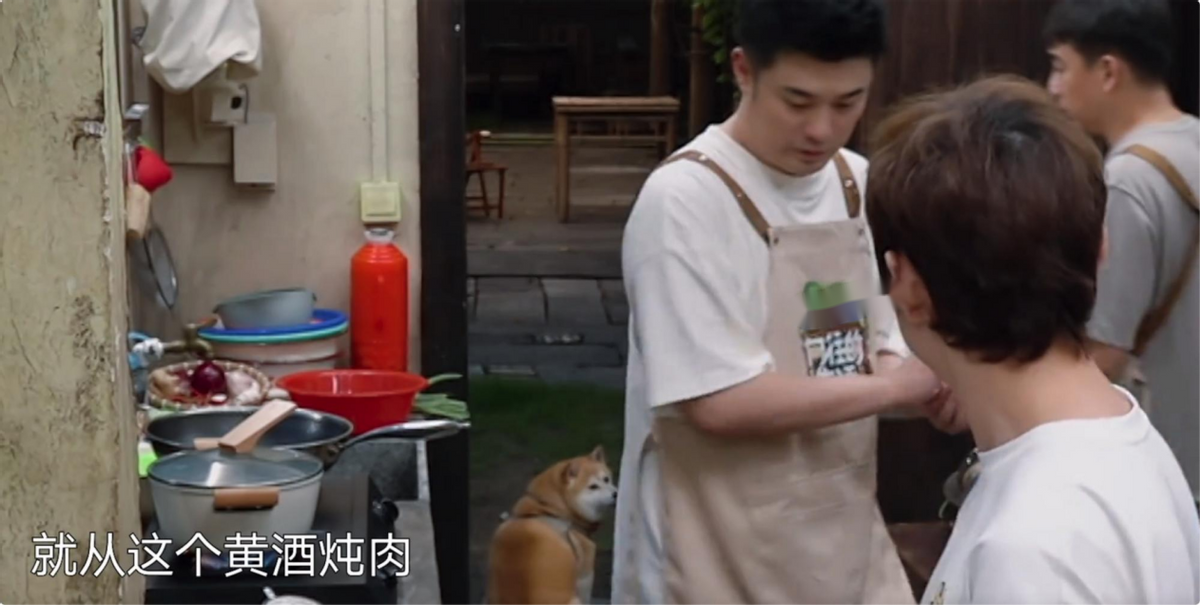 节目中他主动进厨房做菜,亲手复刻黄磊的“无水黄酒红烧肉”。