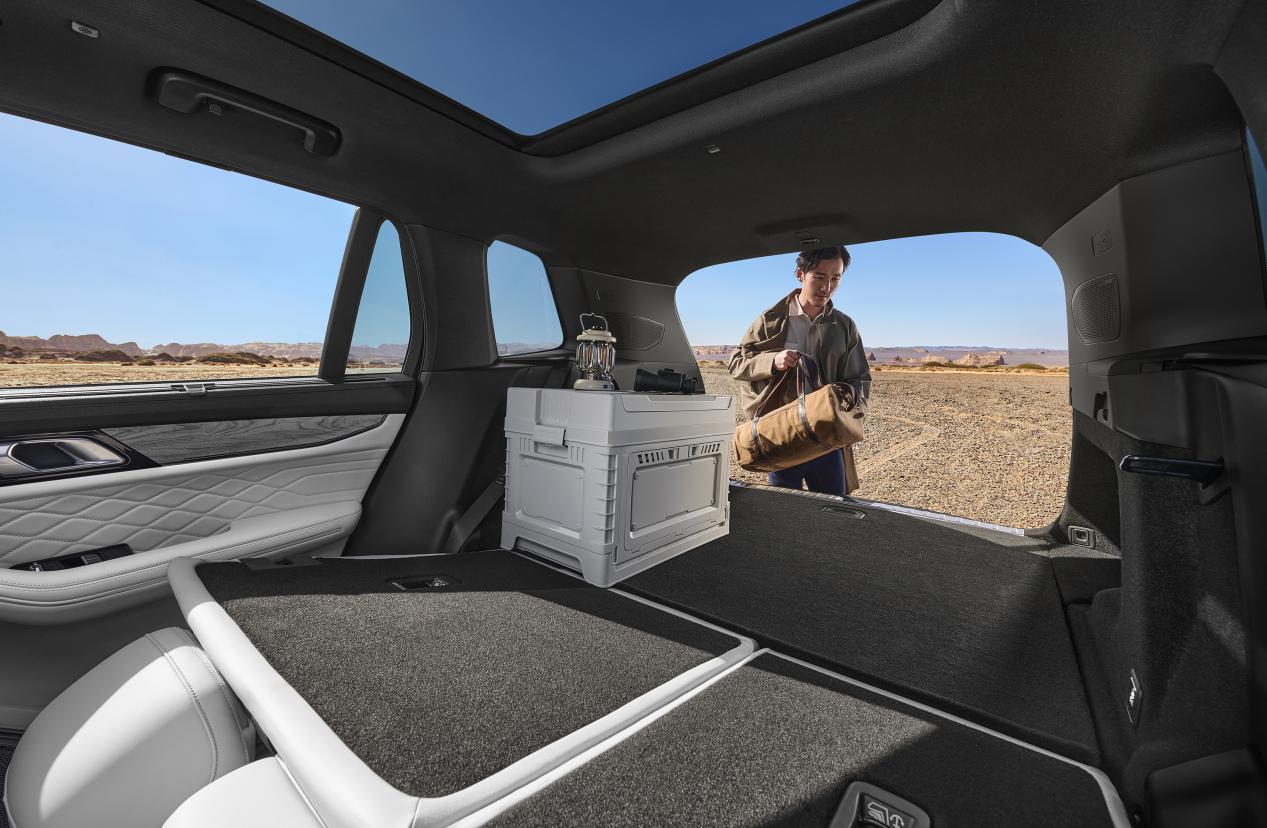 对空间的处理体现了其明确的产品策略。利用超5米的车长和近3米的轴距,它专注于打造一个极其宽敞的五座空间。第二排的乘坐体验是重中之重,其宽度、坐垫深度和腿部空间均达到了同级别的领先水平,确保了所有乘客的舒适性。更重要的是,这个空间具备很强的灵活性,可以轻松转变为一张大床或一个巨大的装载空间,完美适应从日常通勤到周末出游的各种生活场景。