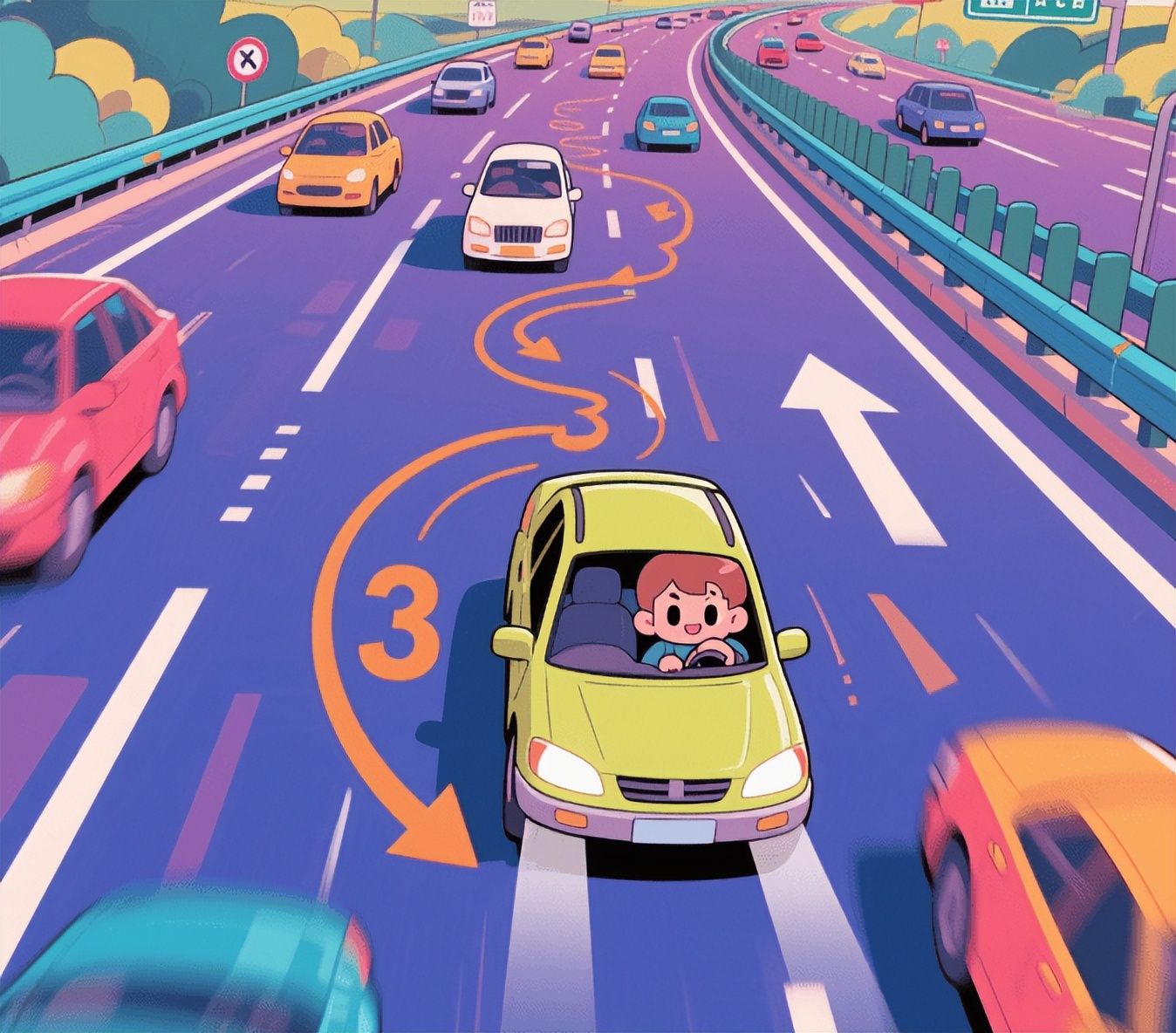 一灯:提前亮灯,别做 “突然袭击”距出口 / 服务区至少 1 公里开启转向灯(高速路牌提前 2 公里提示)严禁 “打灯就变道”,必须等待 3 秒以上变道完成后及时关灯,避免误导后车 二镜:扫 3 次镜子,别漏盲区先看内后视镜:判断后方车辆距离再看目标车道外后视镜:确认安全车距(至少能看到后车完整车头)最后转头看盲区:后视镜有死角,转头 15° 可防 “鬼探头” 三方向:缓打方向,别画 “S” 线方向盘转动幅度<15°,轨迹呈平缓斜线变道时匀速或稍加速,别减速让后车 “追尾”50-60 米内完成变道,避免长时间跨车道行驶三、紧急避坑:错过出口怎么办?✅ 正确操作:将错就错,下口再绕
