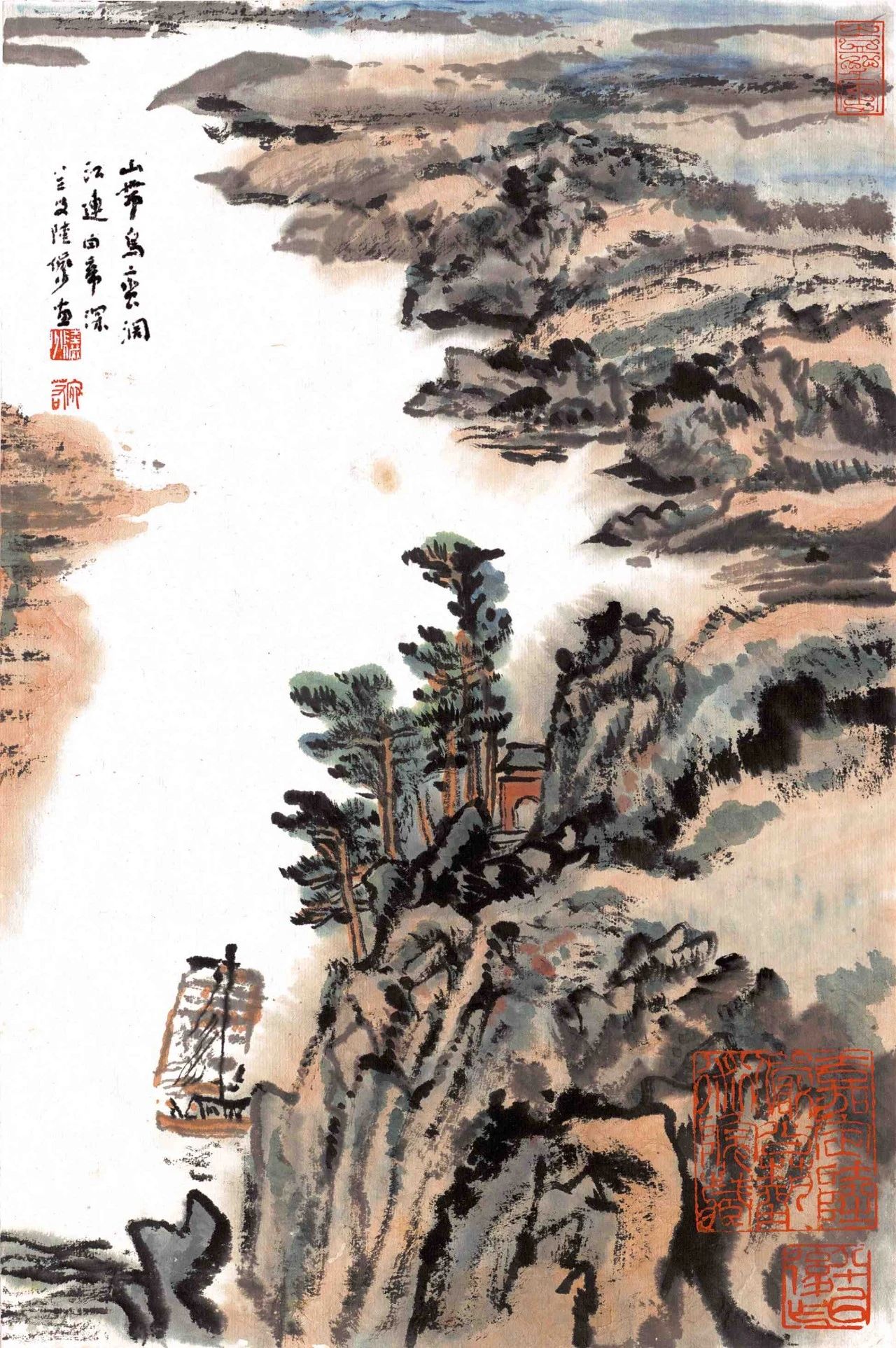 陆先生1927年拜冯超然为师,并与吴湖帆相识,在两位先生处,看到不少历代名家真迹。抗日战争期间,陆先生流寓内地,1946年回归故乡。在此之前,其作品多为古代传统的消化和吸收。返乡途经三峡的经历,激发了他的创新意识,开始将以前局部改造传统转换为有意识地建立个人风格。