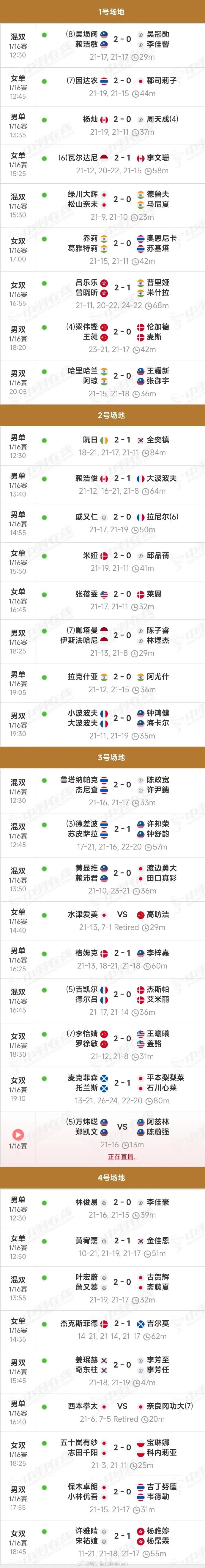 2026年印度羽毛球公开赛,昨天结束了首个比赛日的争夺,国羽战绩2胜1负。女单高昉洁因伤退赛,其余2场均取得胜利。梁王这场赢得跌跌撞撞,首局打到23比21才分出胜负,对手其实并不强。详细赛果如下