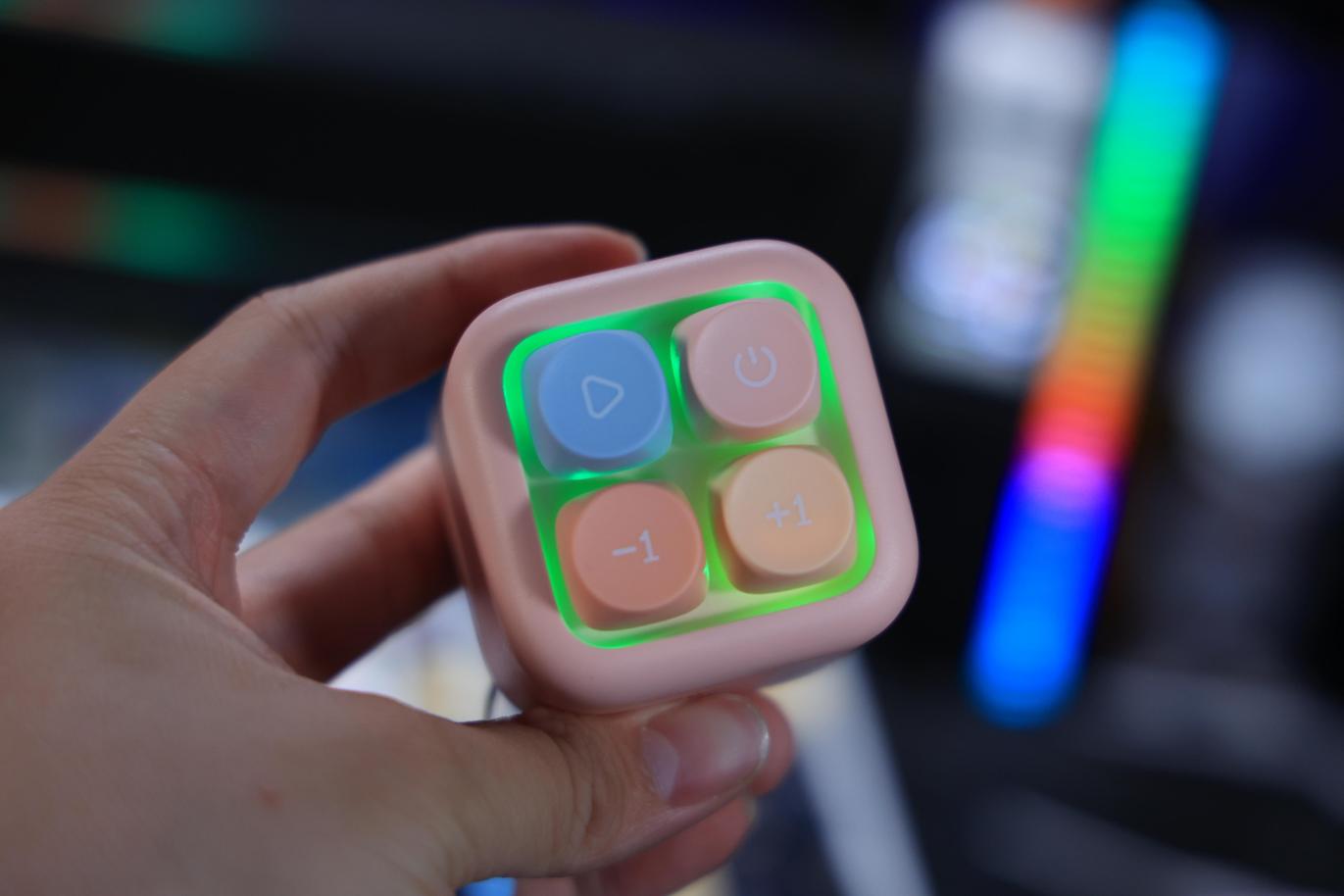 切换到游戏模式,音响瞬间变身 “迷你游戏厅”:顶部四个按键化身 “地鼠洞”,七彩灯光随机亮起,按下亮灯的按键就能触发 “打地鼠” 音效,成功击中时还会传来 “金币掉落” 的清脆声。按键的机械手感配上灯光闪烁,仿佛回到小时候蹲在游戏厅狂敲按钮的快乐时光,敲着敲着就忘了工作的烦恼。