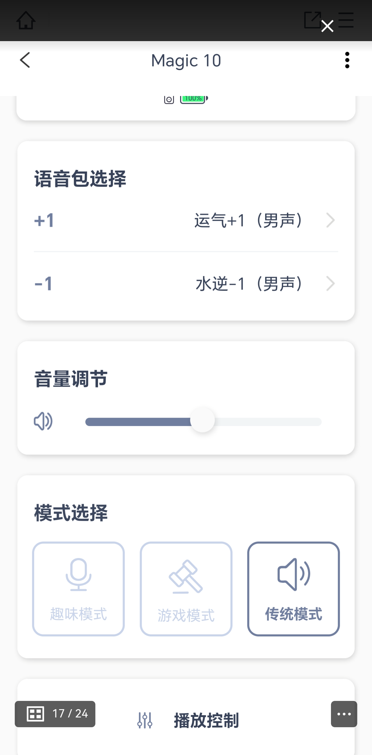 下载 Allway 官方 APP 后,音响瞬间变身 “智能解压管家”。APP 界面简洁直观,顶部显示实时电量,中间是语音包选择区(经典 / 趣味分类清晰),底部可调节音量、切换模式(趣味 / 游戏 / 传统)。最方便的是能直接在 APP 上预览所有语音包,一键切换心仪的热梗,比按键操作更高效。此外,APP 还支持播放控制(上一首 / 下一首 / 暂停),懒人躺在沙发上就能远程操控。