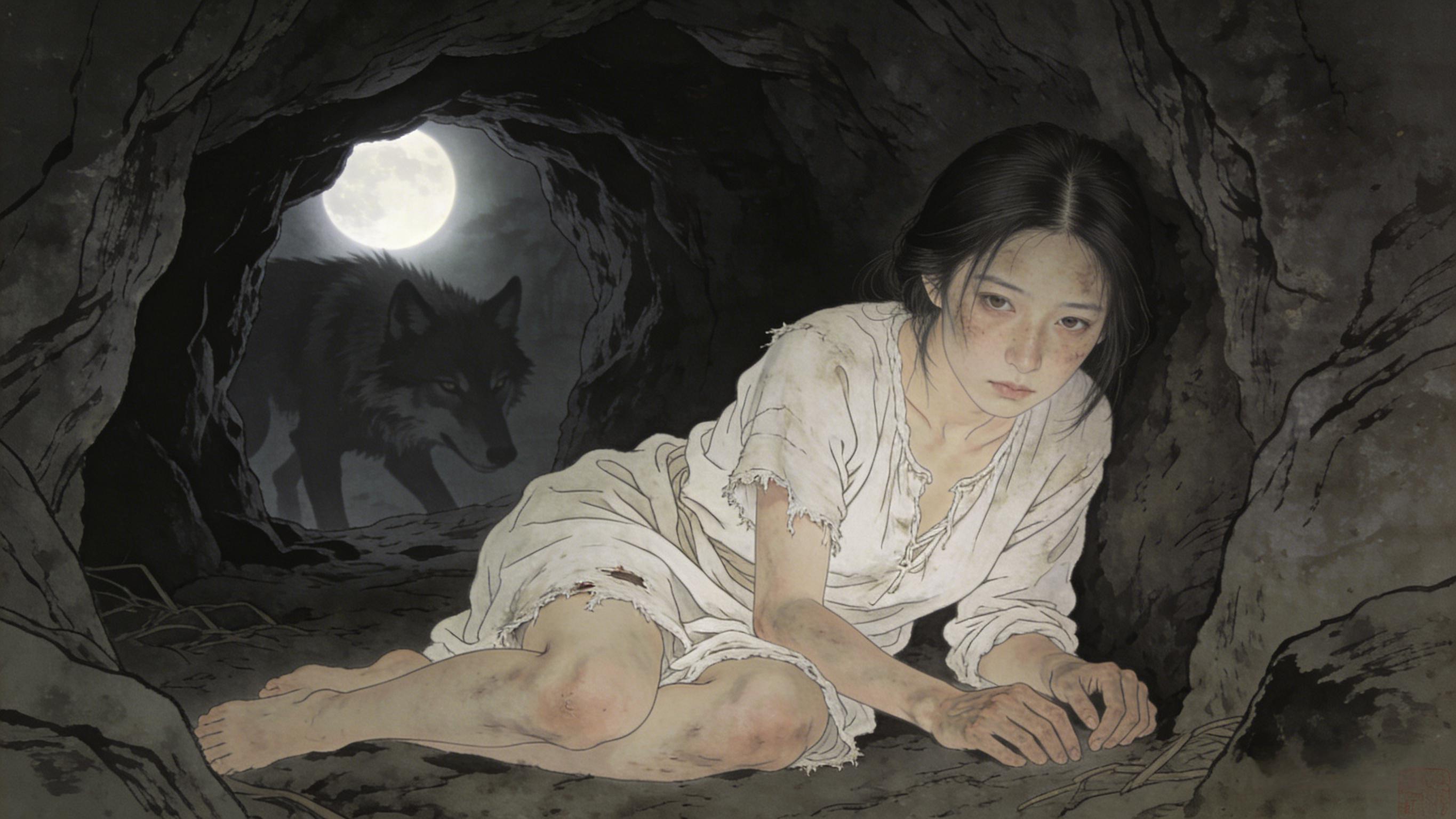 洞里又冷又湿,女人摔的浑身哆嗦,她哭,她喊,伸手去抓,只抓到一把烂泥。