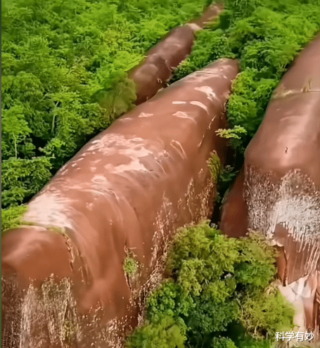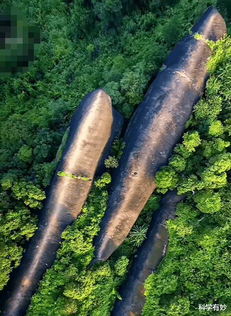 三鲸石位于泰国汶干府普欣森林公园内,紧邻湄公河与老挝边境。从空中俯瞰,三块砂岩巨石一字排开,形态逼真得令人惊叹: